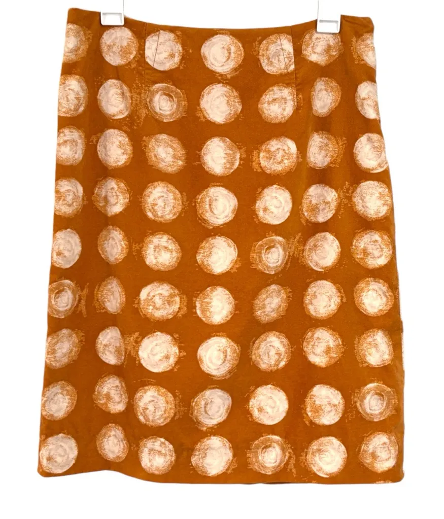 What a perfect skirt for Fall! From the coffee shop to the classroom to walking the dog - this skirt will pair perfectly with boots and a tucked-in blouse for the ultimate fall look! Brand: Maeve by Anthropologie Color: Orange, White Size: 4 Approx Flat Lay Measurements: Waist- 15” Length- 22.5” Condition: EUC; no rips, holes or stains. Appears to have barely been worn! Side Zipper with additional hook and eye closure Walking slit in back of skirt (4”) Cotton Blend material Material does not give Machine Washable All items from a smoke free home! *Color may vary slightly from pictures shown*