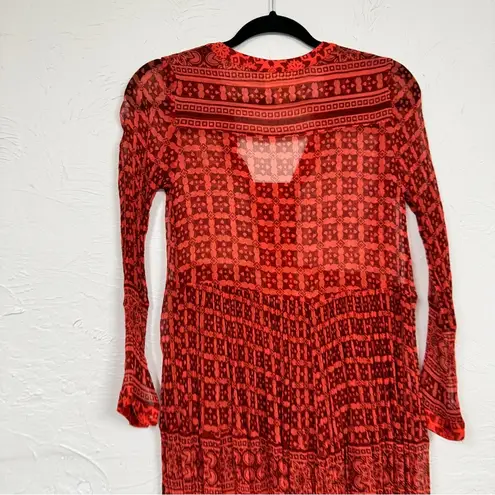 Maeve Anthropologie Red Orange Sheer Long Sleeve Babydoll Dress Womens 0 Casual - $29 - From Lisa