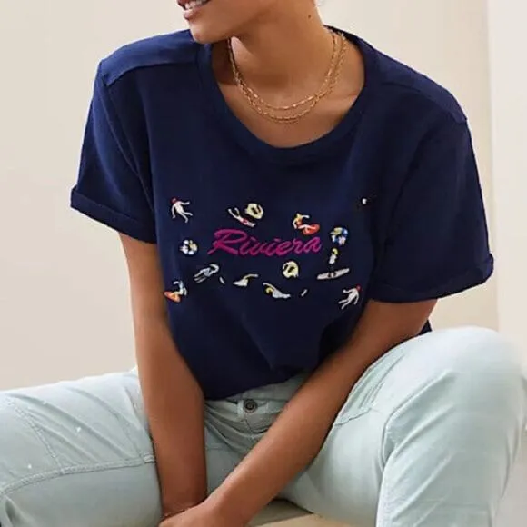 Maeve Anthropologie Riviera Dark Blue Short Sleeve Top Swimmers small - $42 - From Aimee