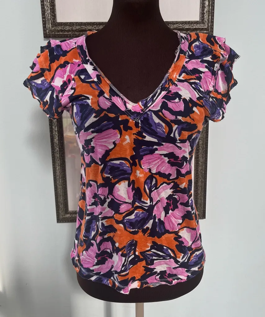 Maeve Anthropologie Women’s Catie Short Flutter Sleeve V-Neck Floral Top Size XS Pink - $17 - From Allie