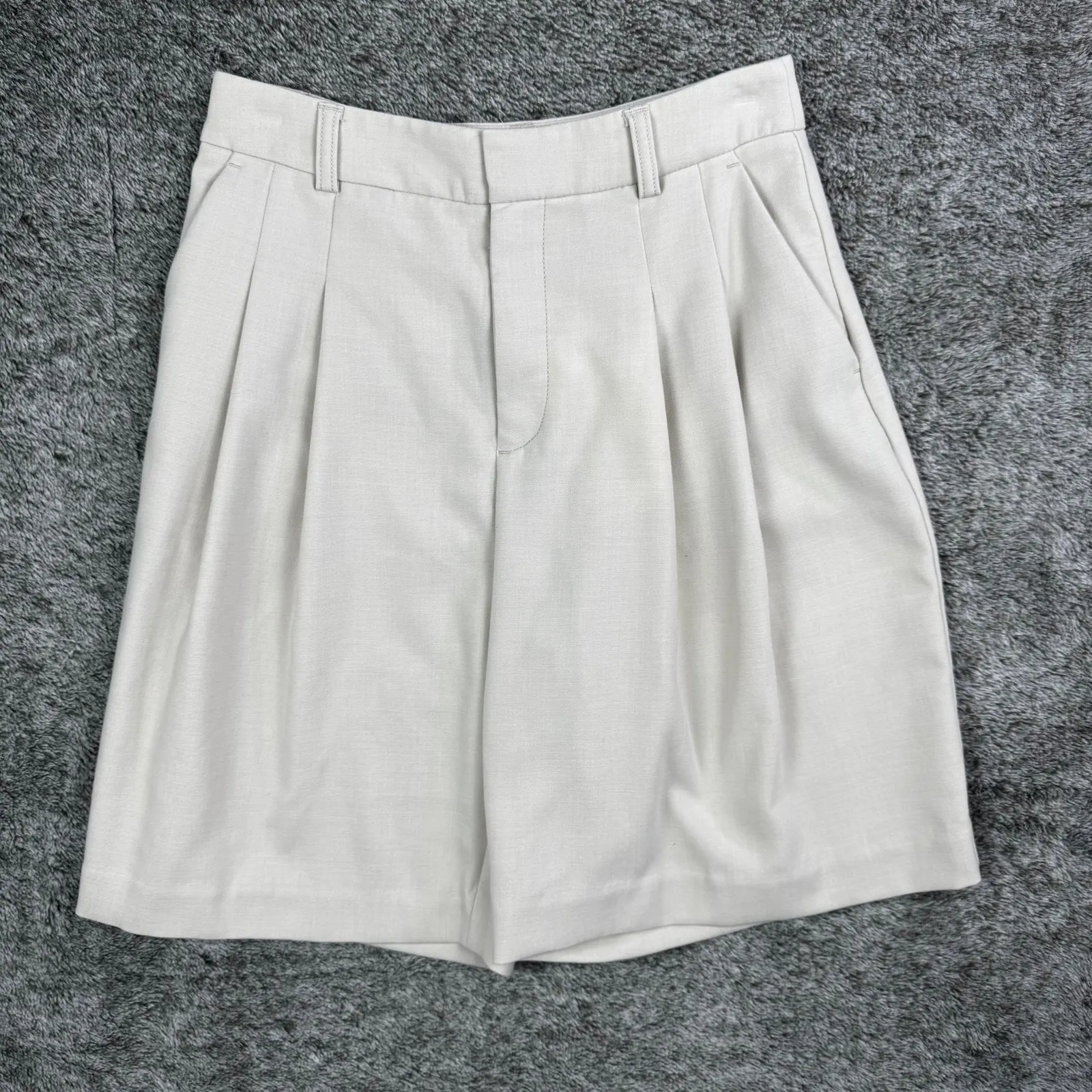 Gently worn, no known stains or flaws Size - 2 Color - Biege/off white Retail - $98 The Avery is known to be a bit dramatic – but we wouldn't have it any other way. With a flattering high rise, double pleats, and a fluid leg, *these* are the shorts to know (and wear!) this season. * Polyester, viscose, elastane * Front slant pockets * One back welt pocket * Front zip