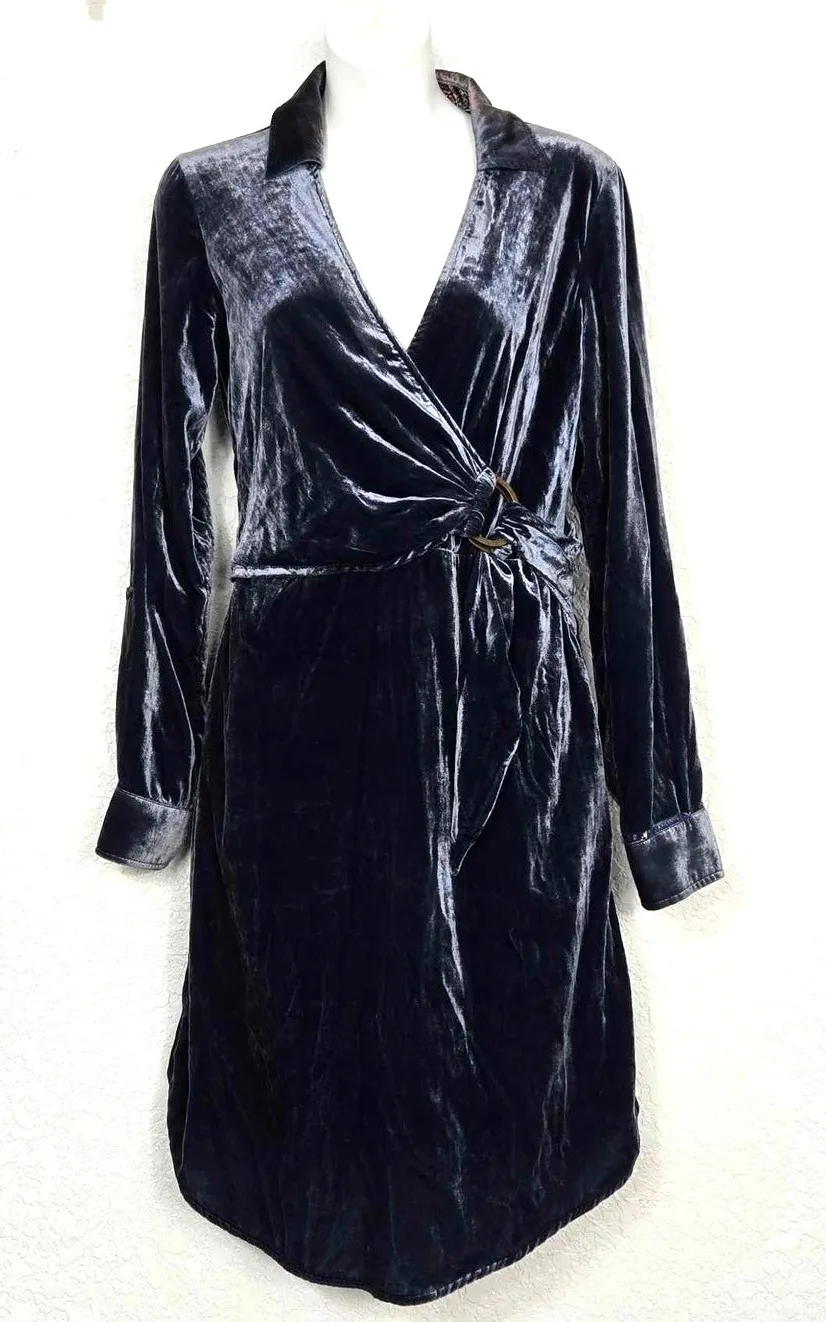 Maeve by Anthropologie Blue Crushed Velvet Shirt Dress Size 2 - $71 - From Myra