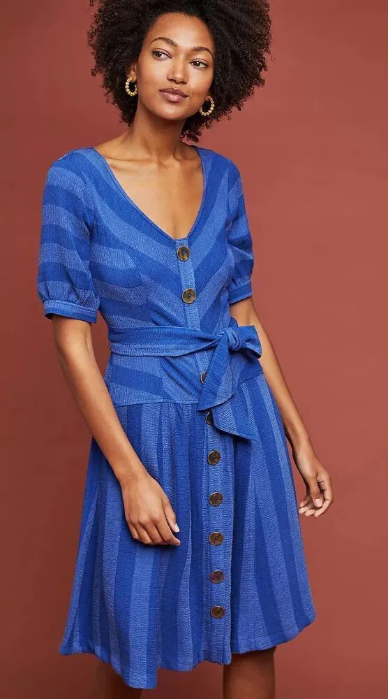 Maeve by Anthropologie Blue‎ Tonal Striped Dress Size 10P NWT Blue - $55 New With Tags - From Amanda
