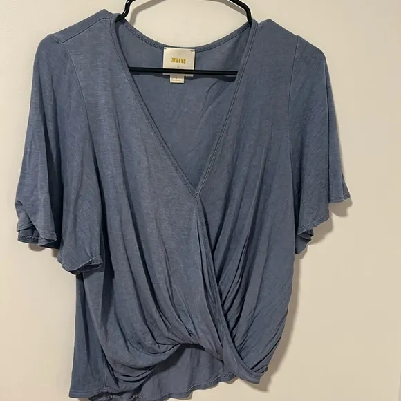 Maeve by Anthropologie Blue Wrap Top Short Sleeve Closet Staple Size Small - $20 - From Maddie