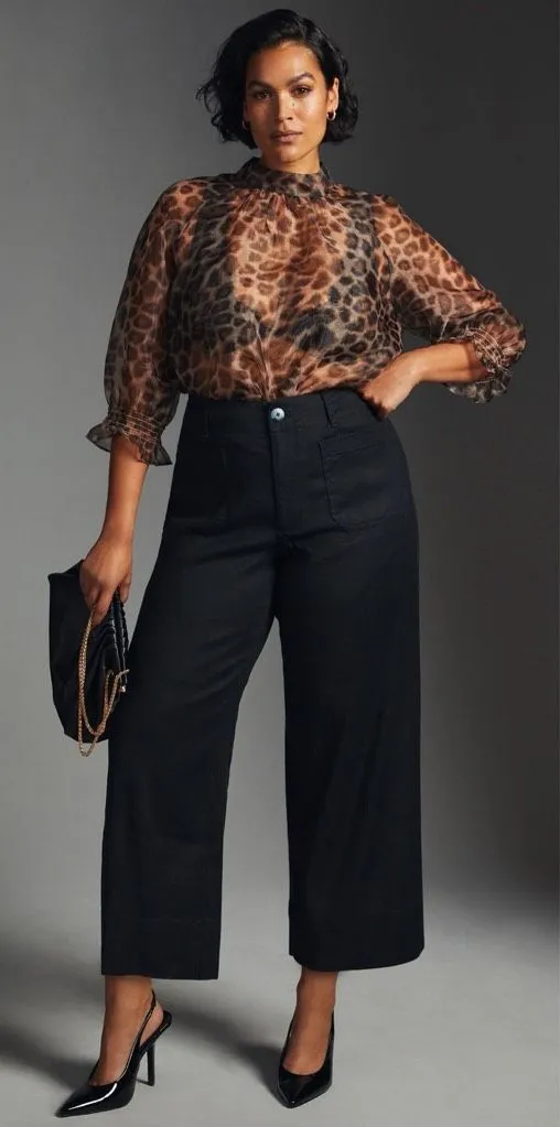 Maeve by Anthropologie Colette Linen Blend Cropped Wide-Leg Pants in Black Size Size 8 - $48 - From AMELIA