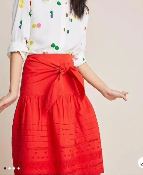 Maeve By Anthropologie Paid Skirt Red Skirt With Tie Knot Eyelet sz 10 - $30 - From Marissa