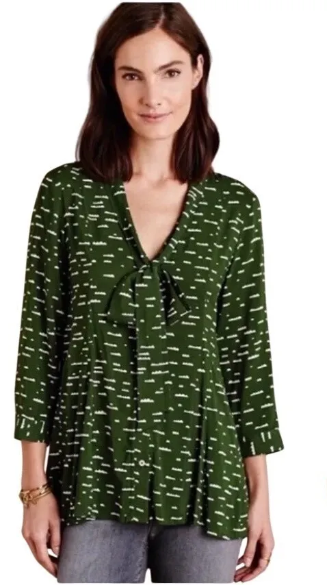 Brand: Size: Maeve Material: 100% Rayon Care: Machine Wash Color: Green, Cream Measurements: All measurements are approximate and taken with item lying flat. Length: 30" Pit to Pit: 21.5" Condition: Excellent, pre-loved. No flaws found upon inspection. Please review all pics carefully for details.