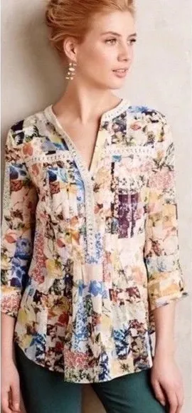 Maeve x Anthropologie Abella Floral Patchwork PinTuck Popover Blouse Women’s Size 12 In good condit... Show more