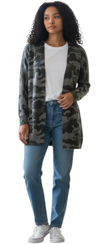 Magashoni 100% Cashmere Cardigan Women's Medium Gray Green Camo Acubi Long Sleeve Sweater New with tags. Never worn 100% Cashmere. Open front. Long sleeves. Lightly ribbed cuffs and hemline. Dropped shoulder Relaxed fit Bust pit to pit 20.5". Length is approximately 32". Sleeve 19". B143 Casual, Acubi, office, fall, winter, spring, layerable 102624