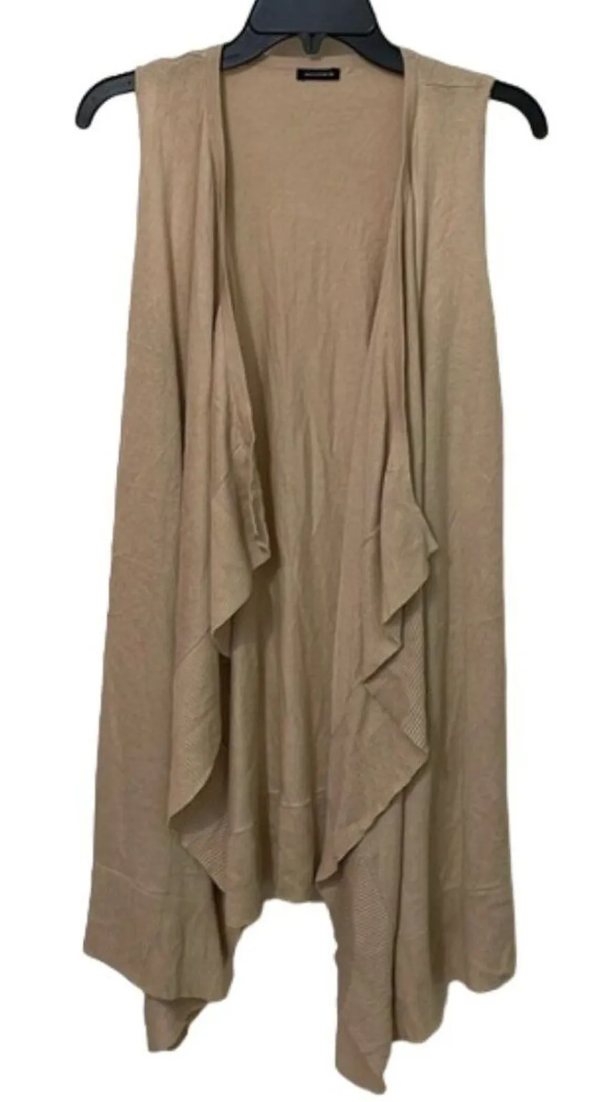 Beige, tan, knit open cardigan, long line sweater vest by Magaschoni. The size tag has been cut. I h... Show more