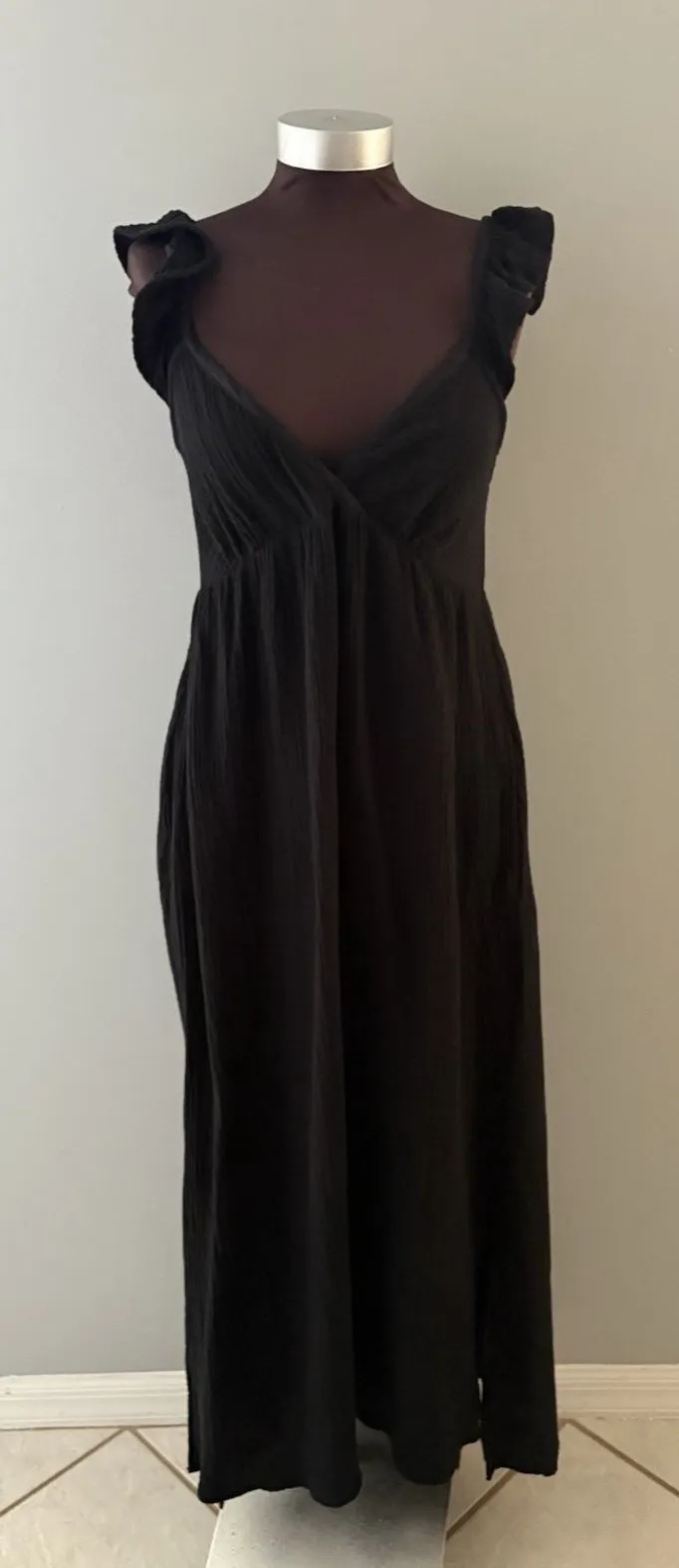 Measurements (inches) - laying flat Tag Size: S Length (top of collar to hem): 42 1/2" F | 45" B Chest (pit to pit): 16" Waist: 16 1/2" Slits: 15" Additional Information: Adjustable straps, 2 sides slits, lightweight Please check your measurements with the ones in the listing. Do NOT rely on Tag Size.