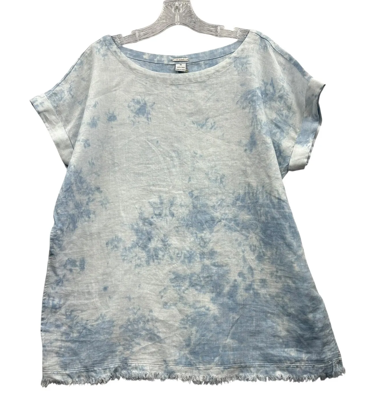 Magaschoni Women's Linen Top Frayed Hem Blue Tie Dye Casual Summer Gently Used Lightweight linen to... Show more