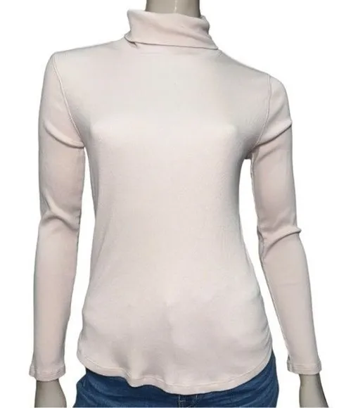 Magaschoni Women’s Size Medium Pale Pink Ribbed Cotton Modal Blend Slinky Long Sleeve Turtleneck Shi... Show more