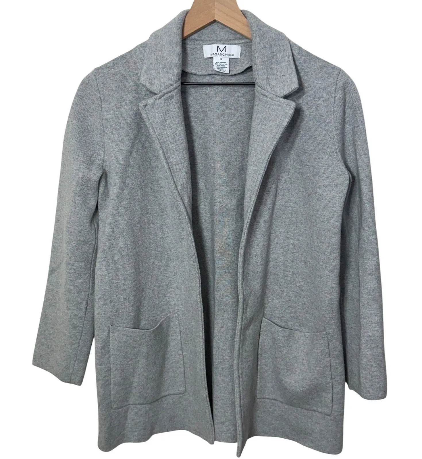 Women's gray knit sweater blazer jacket, cotton wool poly blend, open front, pockets, size small Measurements: • Length: 25 in • Bust: ~19 in Good Pre-Owned Condition *any flaws will be noted above* ***Please make reasonable offers with the "offer" button (I won't negotiate in comments, no transactions offsite, no trades)**** • All items come from a smoke-free home. • Please compare the measurements to something you already own. Keywords: Magaschoni, knit blazer, collarless jacket, cardigan blazer, gray jacket, women's knitwear, lightweight outerwear, casual blazer, workwear, versatile layering, minimalist style, sophisticated casual, patch pockets