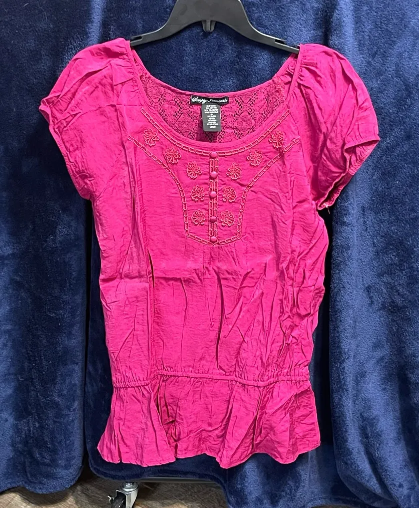 Magenta Embroidered Women's Top Puff Bell Feminine Short Sleeve Long Peplum L Pink Size undefined - $20 - From Trend