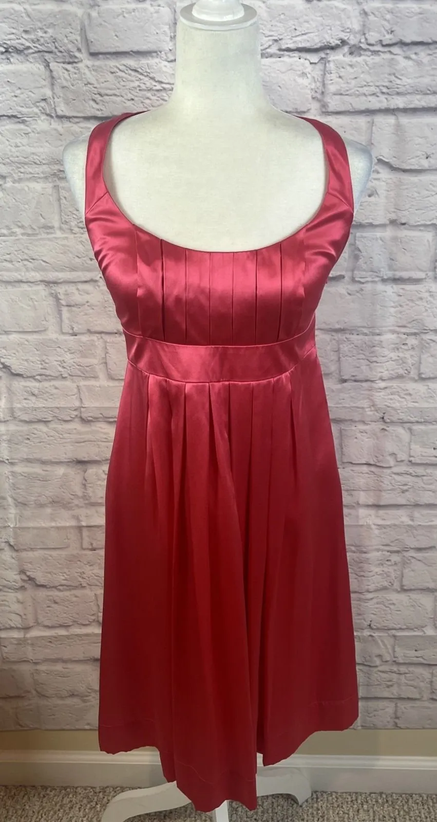 Maggy London 100% Silk Pink Feminine Coquette Ballet core Party Dress Size 2 Empire waist. Pleated. Sleeveless. Side zipper with hook & eye closure. Size 2 All measurements are approximate & taken laying flat Armpit to armpit ~16 Shoulder to hem ~38 Excellent preloved condition. No rips, tears or stains. Smoke free home Elegant, feminine, special occasion, party, 100% silk, coquette, feminine, girly, pink, Balletcore, princess