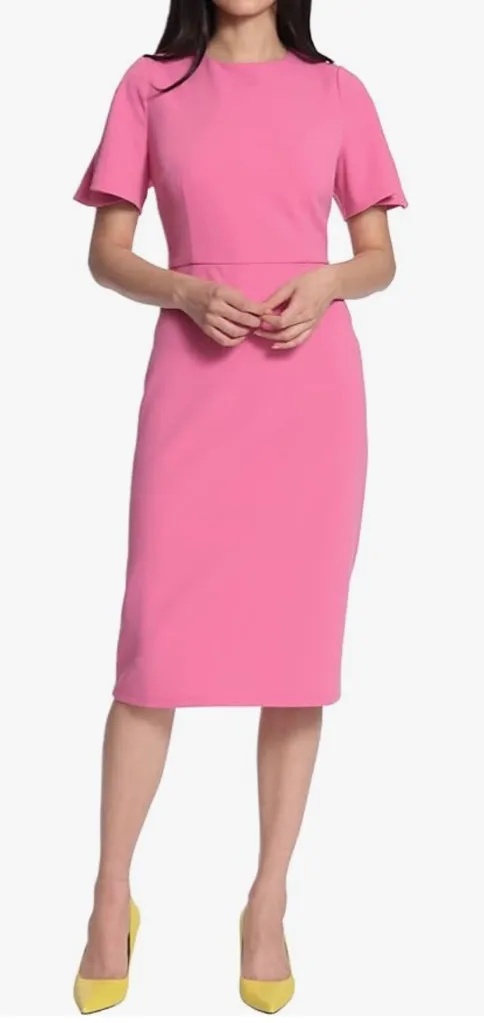 Brand New With Tags. Maggy London Flutter Sleeve Pencil Skirt Dress in Ibis Rose Pink. Jewel neck, s... Show more