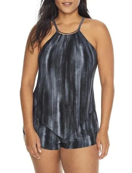 Appear sleeker and slimmer in seconds with fashion-forward Magicsuit swimwear! Size: 10 Color: Black Innovative twist on your traditional one-piece swimsuit Smooth, stretch microfiber Figure flattering romper sits atop built-in one-piece Smoothes tummy and waist for guaranteed confidence Built-in underwire cups with removable foam inserts NWT - new with tag
