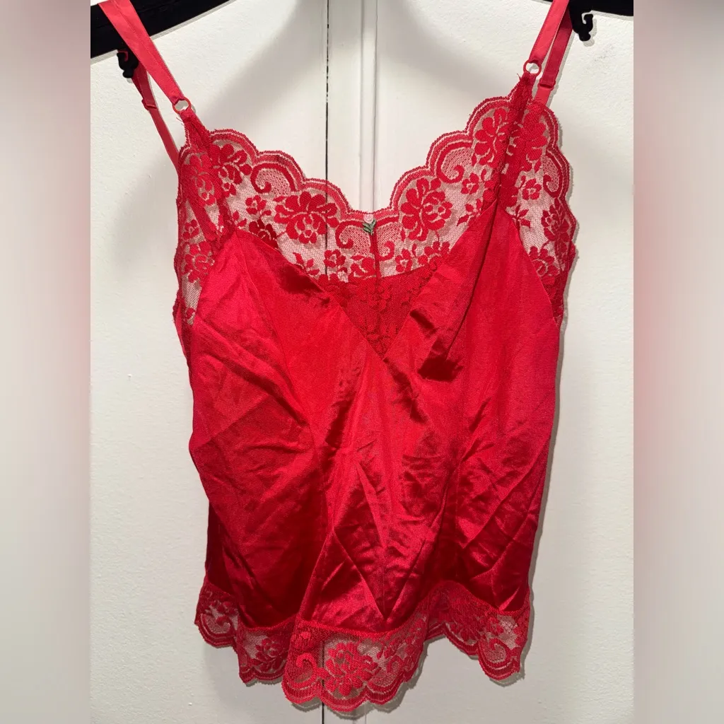 This is a gorgeous red lace cropped camisole top by Chantilly Maidenform. It is vintage and I think... Show more