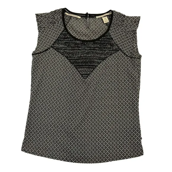18-311 Maison Scotch Bahamas New York Waikiki Shirt Petite Small Preowned Size: SP Color: Black, Cream Type: Blouse Department: Women Style: Blouse Neckline: Round Neck Sleeve Type: Cap Sleeve Sleeve Length: Short Sleeve Pattern: See Photos Material: n/a Garment Care: Hand Wash Country/Region of Manufacture: China Please check photos for measurements and more description of the item.