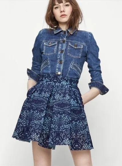 MAJE LACE BLUE HIGH WAIST LINED SKATER SKIRT Zips in back Size 1 (maje sizing). See measurements for best fit Waist measured flat approx 13 inches Length approx 19 inches Smoke few pet free home New with tag! Orig $275 Cute Romcore lacey coquette Softgirl skirt