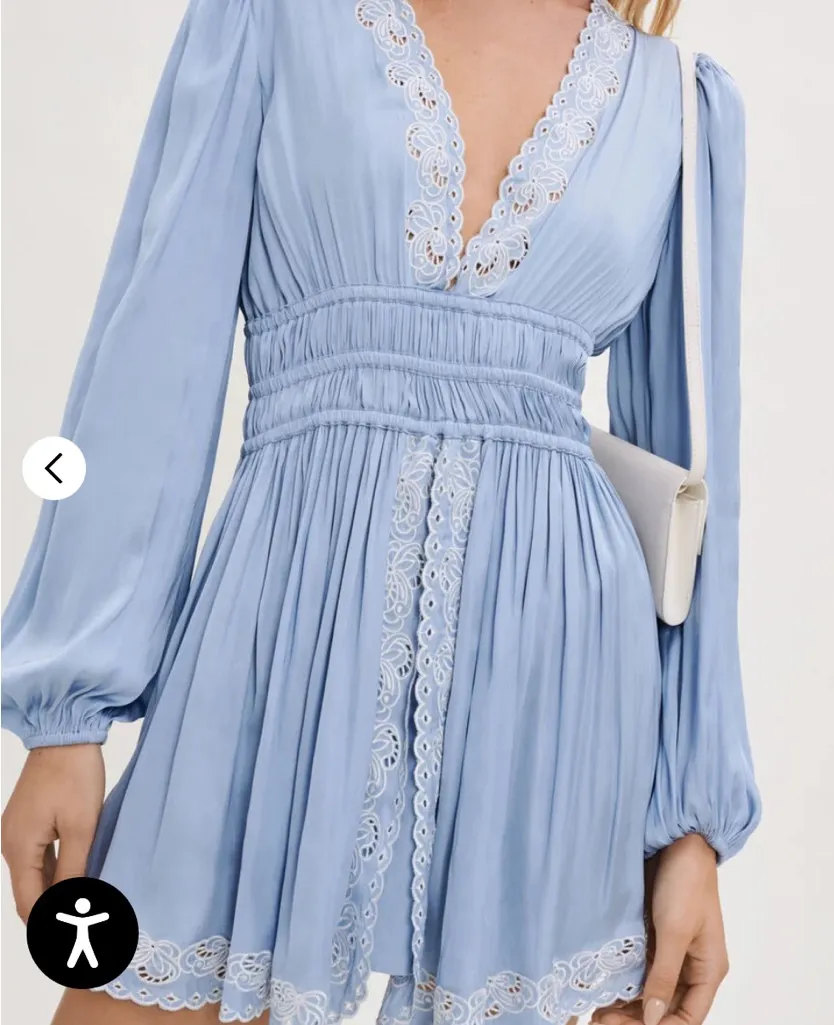 Maje Light Blue Dress with White Lace Detail Embroidered Satin Size L - $280 - From B
