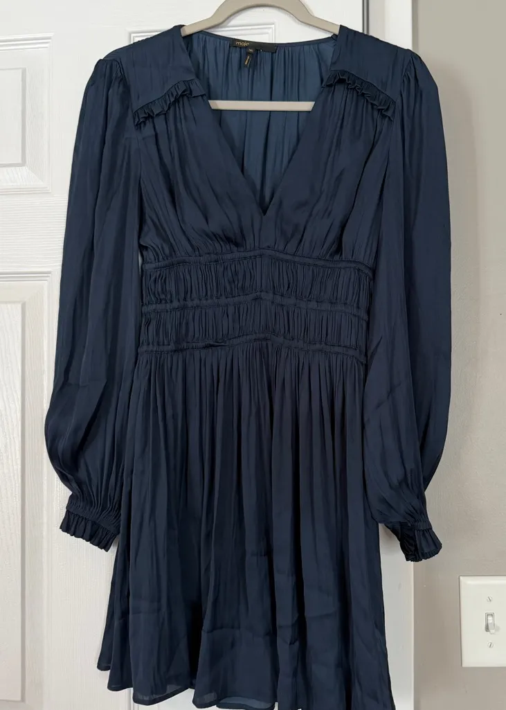 Maje Royal Navy Blue Long Sleeve Mini Dress Datenight Party Size EU36/ US Small - $45 - From Abeer