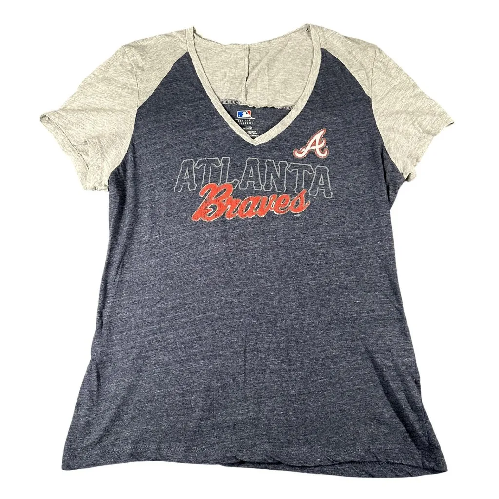 Atlanta Braves Shirt Womens XL Blue Gray MLB Baseball Tee Short Sleeve Genuine Good used condition... Show more
