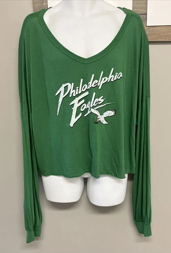 Majestic Women’s Philadelphia Eagles Barkley 26 Long Sleeves V-Neck Cropped T-shirt- 2XL Women’s 2XL... Show more