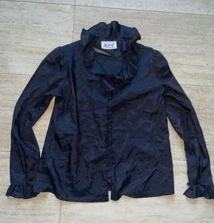 Malouf of Dallas Blouse Womens Long Sleeve Black Dotted Ruffle Collar‎ Top M Size M - $18 - From Yannie