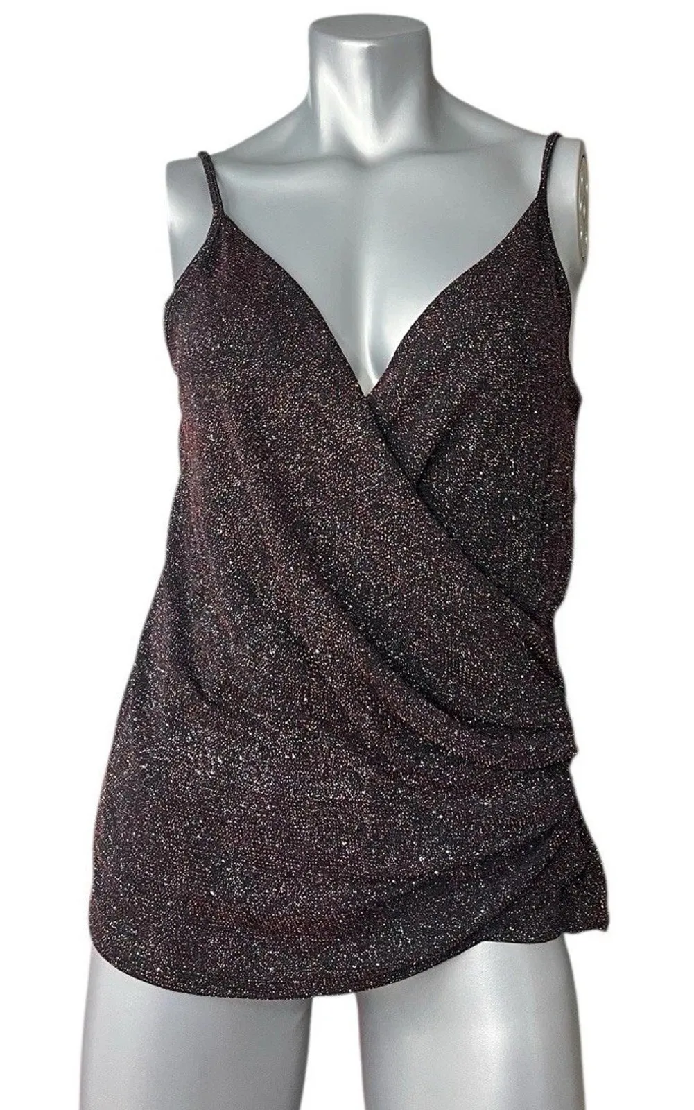 MANGO MNG Glitter Ruched Cami Red Faux Wrap Top Size Large New with tags Armpit to armpit - 16” Top... Show more