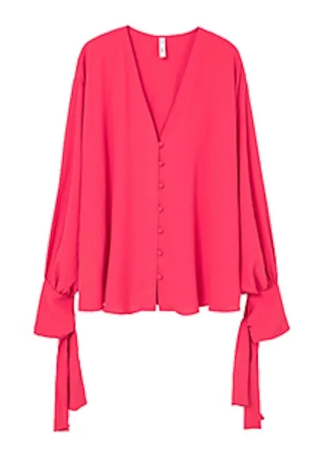 Gorgeous red–magenta blouse by Mango with beautiful drape and eye-catching tie cuff details. This is... Show more