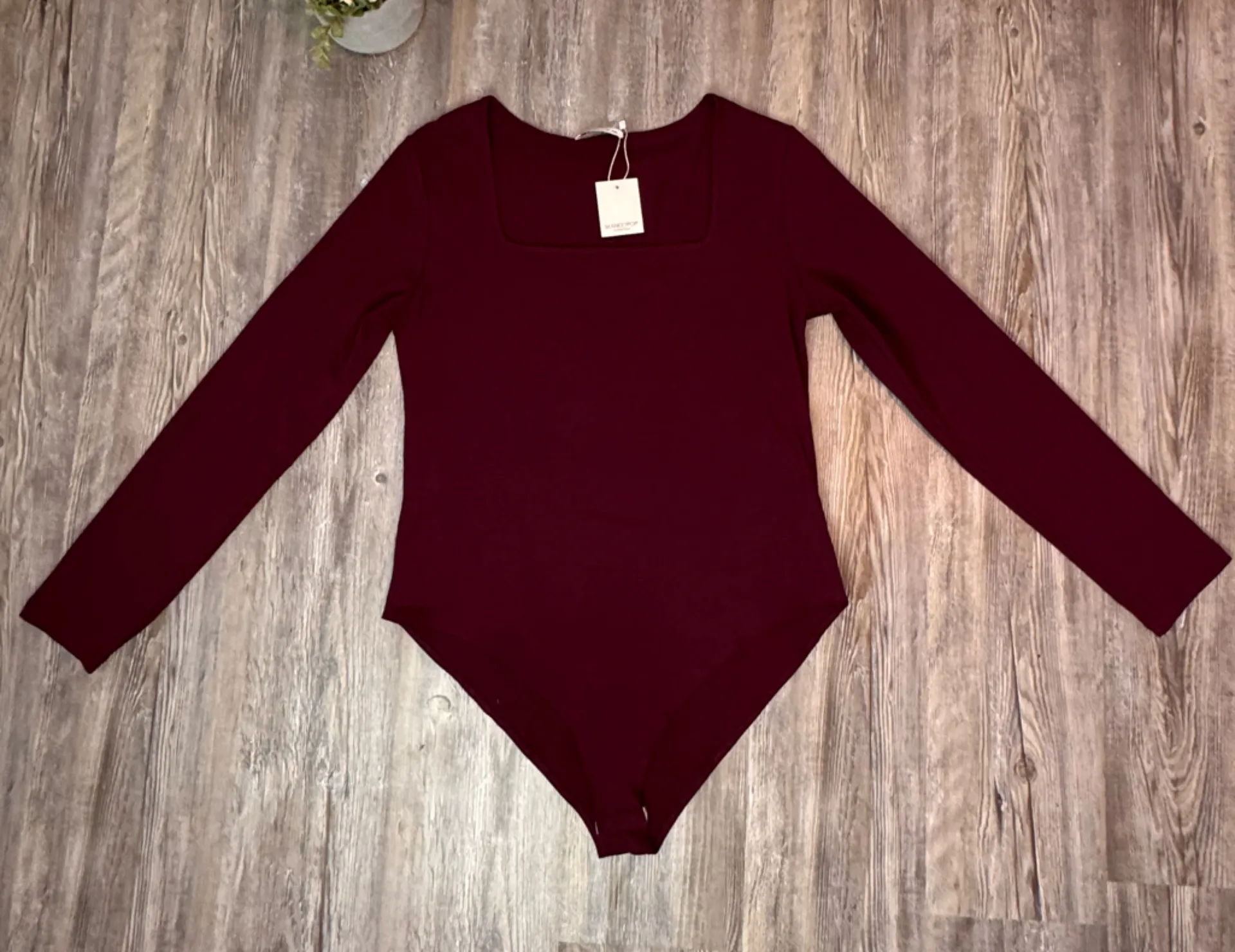 Mangopop Women Square Neck Burgundy One Piece Long Sleeve Body Suit Plus XXL Red - $19 New With Tags - From Hailee