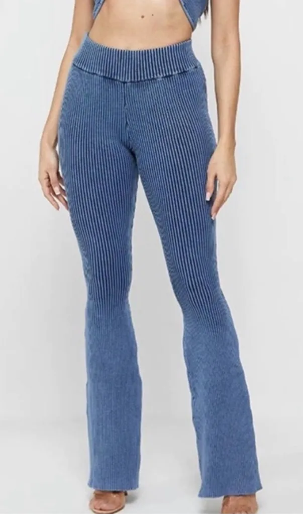 Manière De Voir Blue Ribbed Knit Flare Pants Size Medium - $80 - From Robin