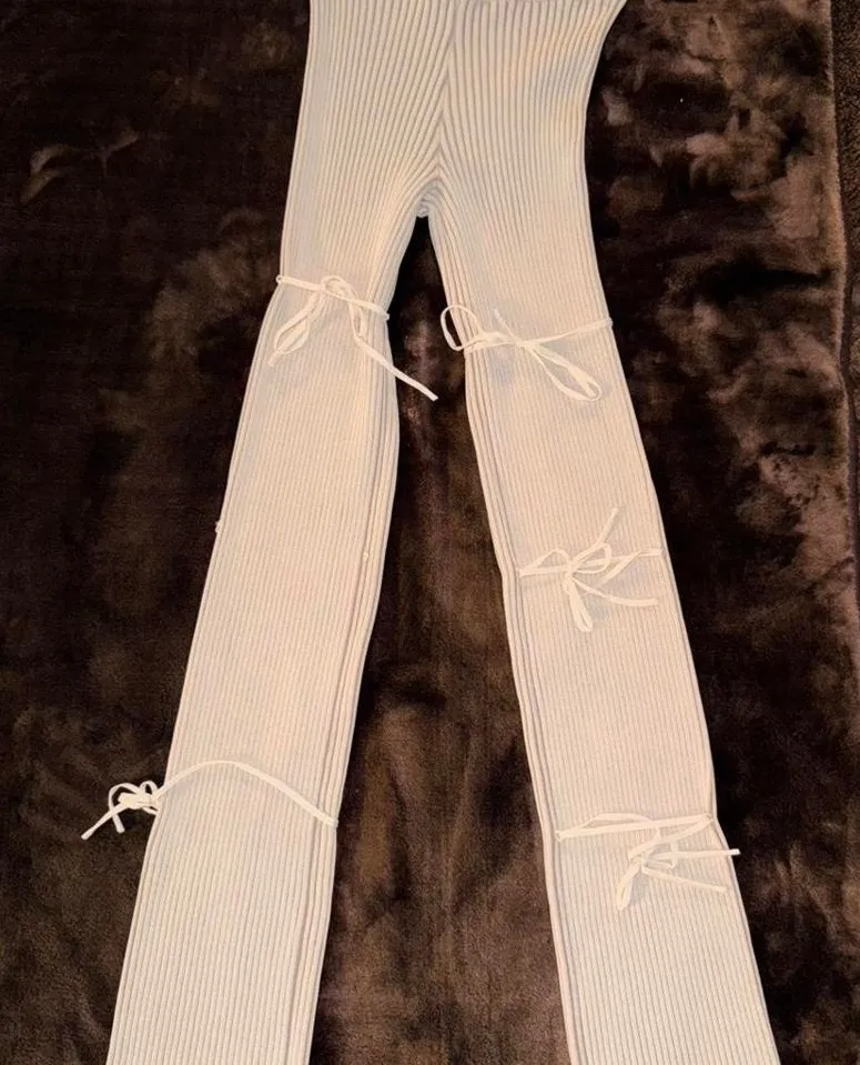 NWT Moniere De Voir Flared Knitted Laced Up Leggings Ivory Small - $48 New With Tags - From Aroleya