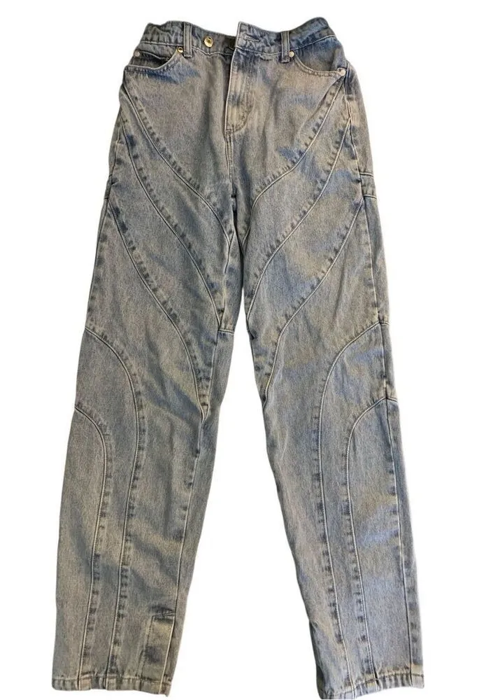 Maniere De Voir Rare Chrome/White Logo Streetwear Denim Jeans women's size 4 Blue - $125 - From Jeremy