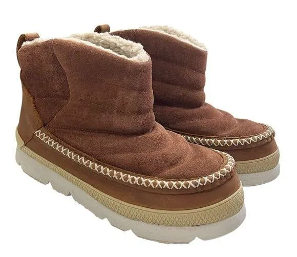 Traditional in style and built for warmth, these Manitobah suede mukluk boots are faux fur lined and easy to slip on. Brand: Manitobah Style: Suede Faux Fur Lined Mukluk Boots Size: Womens Size 9 Features: Whipstitch detail, pull-on entry, padded ankle shaft Preowned condition; normal signs of use (dirt, discoloration, scratches). I have given this a wipe down but there are some dirt that are hard to remove. Please inspect all photos for overall condition. No Box. No dust bag.