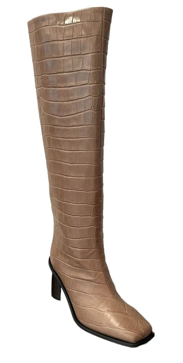Marc Cain Women's Alligator Print Leather Knee High Article Boot Taupe 6.5 NIB New In Box US Size... Show more