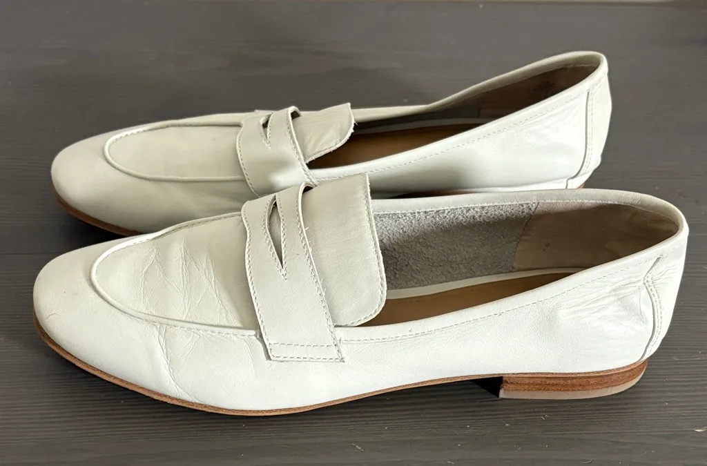 Round toe Slip on Classic penny loafer style Buttery Soft Leather upper. Good condition. There is... Show more