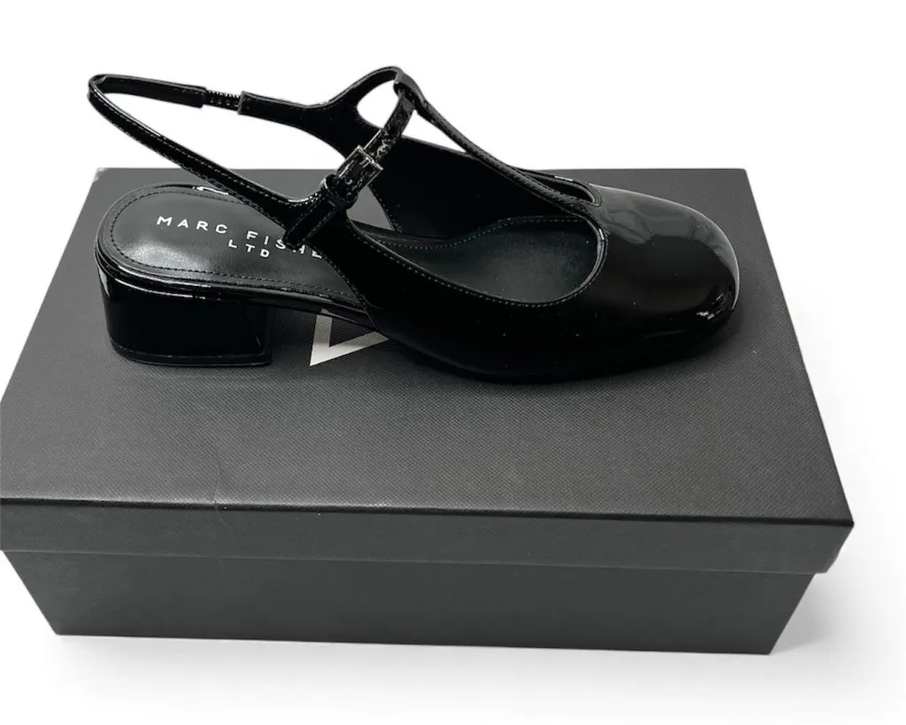 New in box Marc Fisher Ltd Women's Folly Black Patent Leather T-Strap Sling Back Pumps Size 5.5 • p... Show more