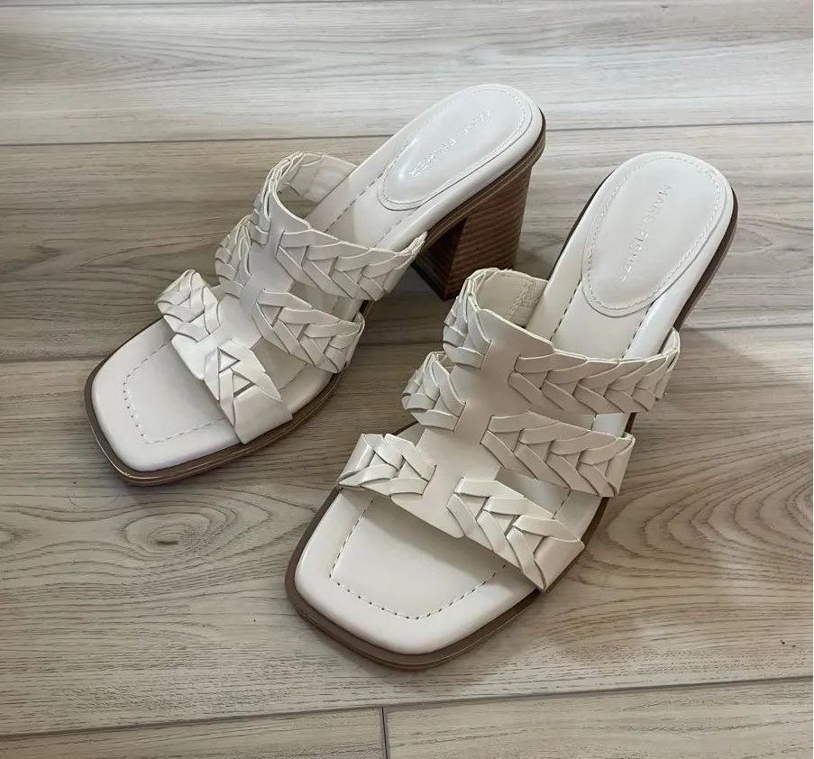 Marc Fisher Womens White Ivory Braided Strappy Block Heel Sandals Size 9 This is a stylish pair of... Show more
