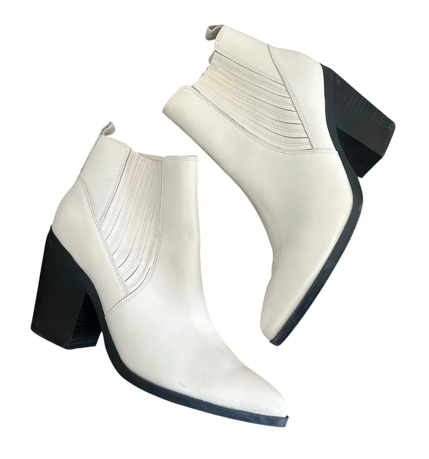 Marc Fisher Western Ankle Boots Trendy Heeled Western Cowboy cowgirl Boot Off White ivory cream... Show more