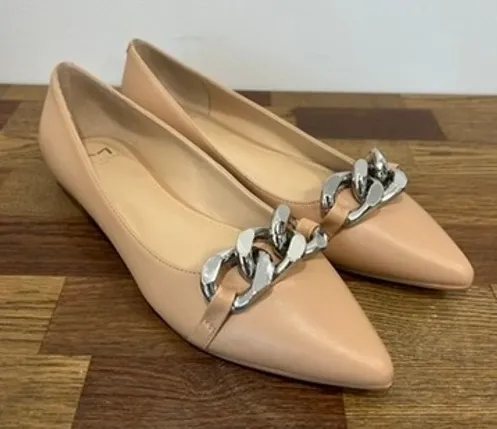 Marc Fisher Womens Seluna Flats 8 NEW $140 Beige Leather Chain Point Toe Chic New in box!