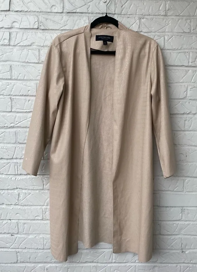 This duster from Andrew Marc Marc New York is amazing piece that will upgrade any outfit! Definitely a wardrobe staple for the upcoming Fall and Winter seasons. • beige • textured animal print • pockets on the seams It’s in very good condition, has a small bleach spot on the sleeve, see photo. Available for same day shipping! Length: 36” Sleeve: 20”
