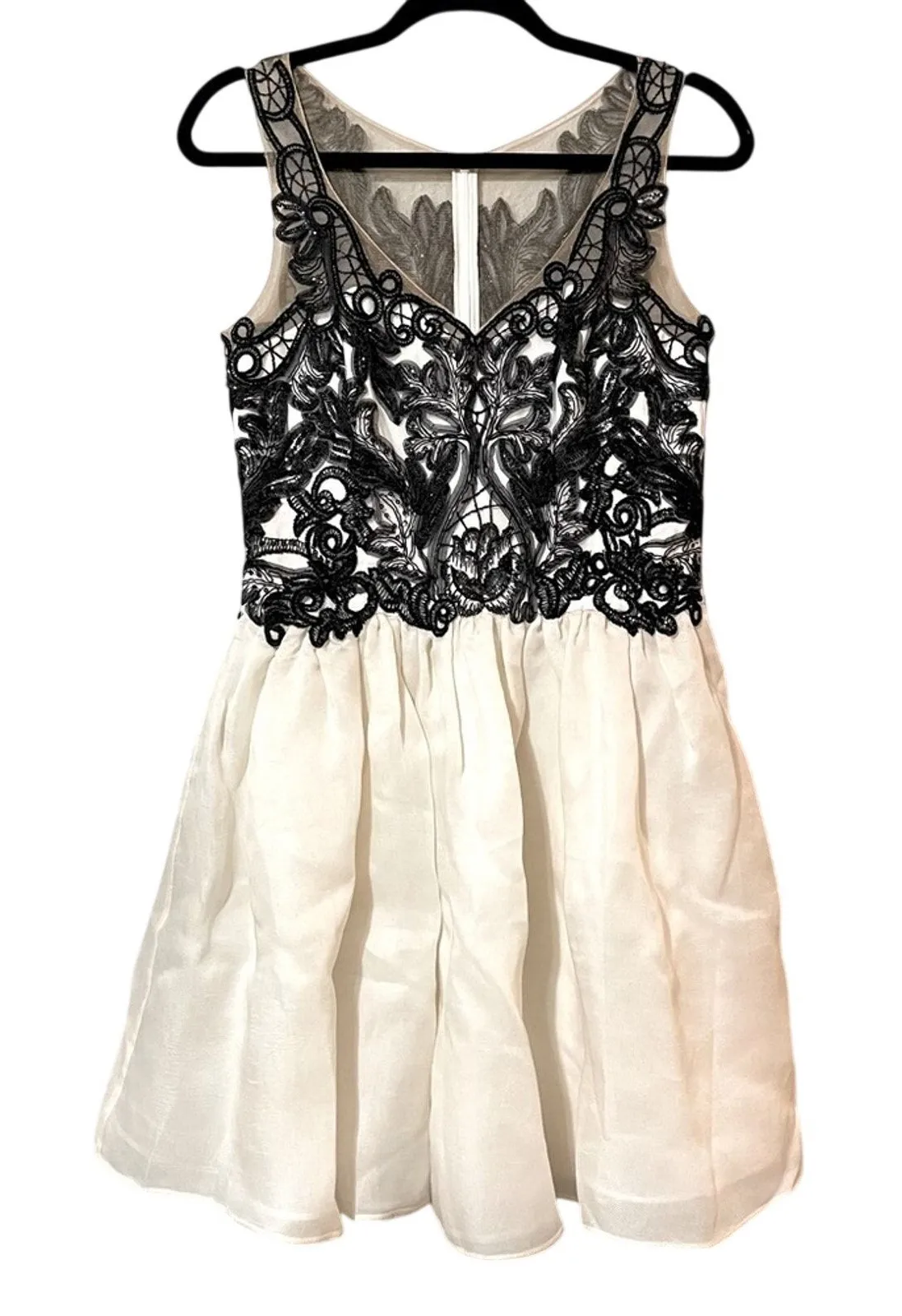 Marchesa Notte Gazaar Black Sequined Illusion Bodice Silk Cream Dress Womens 8 - $160 - From Lisa