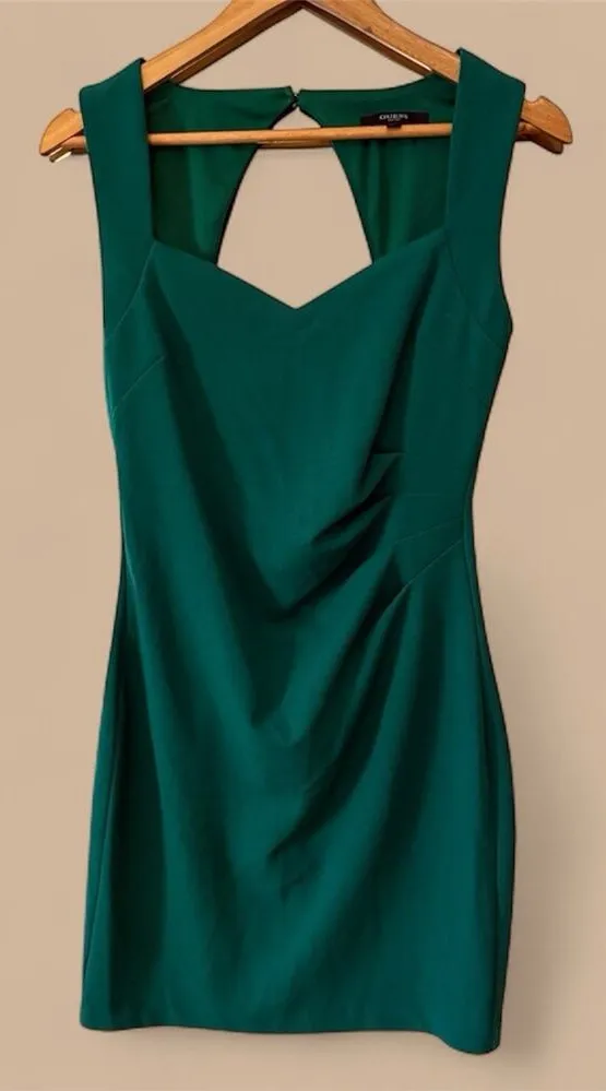 Make a statement in this emerald green sheath dress, which features a sweetheart neckline, a modern back cutout, and draped detailing. The tailored, curve-hugging silhouette is perfect for evening, cocktail, holiday, or wedding events. Details: • Color: Deep Emerald Green • Neckline: Sweetheart with back keyhole cutout • Fit: Tailored, curve-hugging silhouette • Material: Smooth stretch blend • Occasion: Evening, Cocktail, Holiday, Wedding Guest • Closure: Back zipper • Condition: Excellent #sheathdress #emeraldgreen #cocktaildress #weddingguestdress