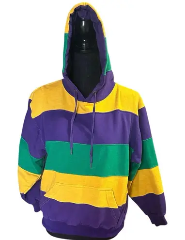 Celebrate in style with this vibrant Mardi Gras striped hoodie in classic purple, green, and yellow. Cozy fabric and relaxed fit make it perfect for parades, parties, or casual everyday wear. Pre-loved but in excellent condition—bold, fun, and ready to bring the festivities with you. This item is pre-owned and has been gently loved before. I carefully inspect each item and will always disclose any noticeable flaws, so you know exactly what you're getting. I encourage questions—whether it’s about the condition, sizing, or anything else. Transparency is important to me, and I’m happy to provide additional details or photos upon request. Let’s find this item its new home! #MardiGras #StripedHoodie #FestivalStyle #PurpleGreenYellow #CarnivalVibes #PreLovedFashion #DepopFinds #CasualWear #StreetStyle #BoldOutfit #HoodieWeather #PartyOutfit #ColorfulStyle