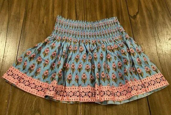 Marea by Liz Joy Pure Joy Home Harbor Sunset Smocked Block floral Print Skirt S Blue - $87 - From Miriam