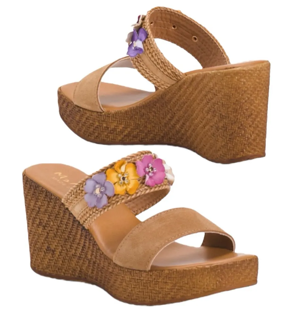 MARIELLA Made In Italy Suede Heeled Sandals With Flower Applique Tan Size 8 - $50 New With Tags - From Brandi