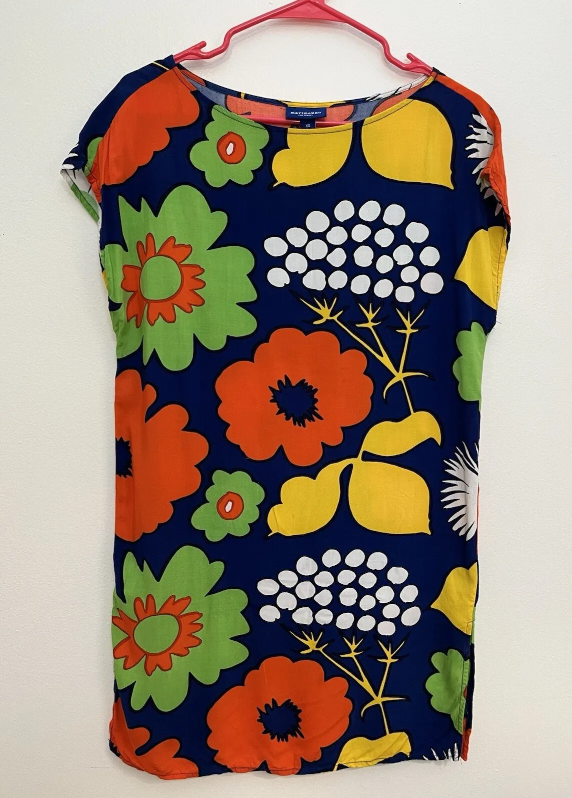 Marimekko Target Bright Floral Mini Dress Swim Coverup Garden Resort Kukkatori Print Size XS pit to... Show more
